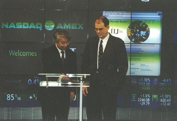 Our listing on the Tokyo Stock Exchange was seven years later than our listing on the US NASDAQ. IIJ mostly did business with Japanese companies, so it was listed on the Tokyo Stock Exchange with the hope of increasing its name recognition within Japan and its credt worthiness with companies listed on the TSE.