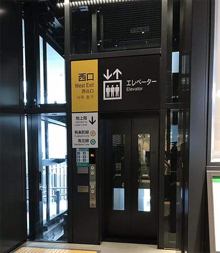 - (1)Use one of the elevators located on each platform and exit through the gates.
