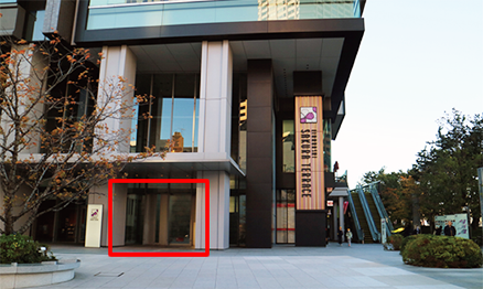 - (1)Cross the intersection and proceed straight through the plaza. Enter through the front entrance of the office building.