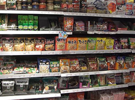 また、ローカルのスナック菓子にも日本語が表記されているものをよく見かけます。これも日本風というイメージを消費者に植え付けるためのプロモーションと思われます。タイでよく売れているスナック菓子に味付けのりがあります。3×10cm程度の海苔に味をつけ、パッキングしたものです。有名なブランドには“タオケーノイ”というものがあります。パッケージには、“味付けのり”と書いてあり、塩味はもちろん、バーベキュー味、トムヤンクン味、天ぷら味、わさび味など、様々な種類があります。タイだけでなく、インドネシア、ラオス、ミャンマーでも非常に人気が高い商品です。今後、このようなタイ起点の商品がAECの流れに乗って、ASEANに拡大していくと思われます。