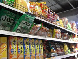 (5)日本の食品と日本語表示が垣間見られるスーパーマーケット店内と商品