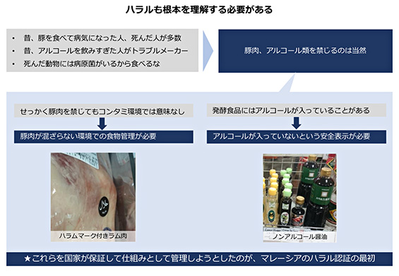 さて、なぜ豚肉や酒がNGなのかは、なかなかわれわれ日本人には理解しにくいことです。以前、ムスリムの方に、「豚肉はウィルスが怖いので生では食べませんよね?」「お酒は飲み過ぎると問題がありますよね?」といわれたことがあります。そこから考えると、あまりに無理なことをいっていることではないと私も感じました。そのような観点で理解してみる、ムスリムの方の立場でモノを考えてみる――これがビジネスチャンスに結びつくのかもしれません。
