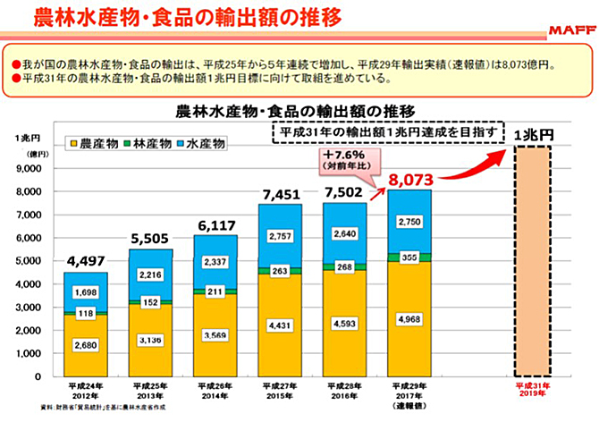 そのアプローチとしては3つ考えられます。一つは、日本の農林水産物そのものの輸出を促進すること、二つ目は加工製品の輸出促進、もう一つは技術を輸出することです。