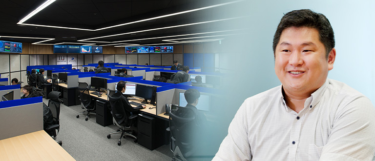 SOCは、ファイアウォールなどのセキュリティ機器による通信記録や、デバイスがウイルスや不正アクセスの兆候を捉えた情報を元に分析し、専門的な知見を踏まえて判断した上でお客様へ報告し、必要に応じて対処等を実施しています。私はIIJのセキュリティ部署に所属し、サービスの企画、開発を行いながら SOCの将来像やIIJならではのセキュリティ運用の方向性を検討する業務を行っています。