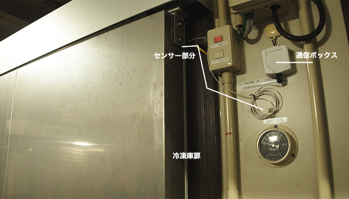 と設置することによって、ぶ厚い扉で覆われた冷凍庫内へは通信が届かない問題を解決しています。