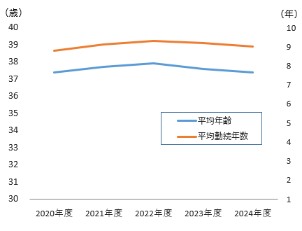 | 月平均残業時間 | 24.7 | 28.1 | 27.7 | 26.2 | 24.8 |