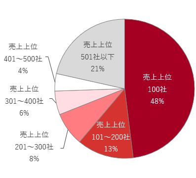 当社グループのお客様は、優良法人・官公庁等を中心に約16,000社にのぼります。インターネット接続・セキュリティ関連サービス等のネットワークサービスは全ての業界で満遍なく利用されているもので、特定業界への偏りはなく、各業界の多くのリーディング企業が当社グループのサービスを採用しております。また、特定のお客様への売上依存度は低く、各お客様向け売上高の全売上高に占める割合は最大でも3%以下(FY24 IIJ単体実績)となっております。