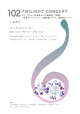 - 102「シューベルトへの旅路vol.5(最終回)《昇華》~白井 圭(ヴァイオリン)、門脇大樹(チェロ)、津田裕也(ピアノ)」(6月3日<月>)