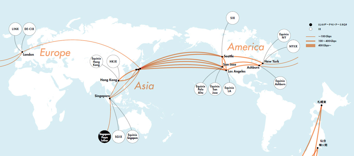 IIJのWEBサイトに掲載しているバックボーンマップは、各拠点間を結ぶ回線の太さ(容量)がわかるよう可視化されており、インターネットの巨大な規模や複雑さを実感していただけると思いますので、そちらもぜひご覧ください。