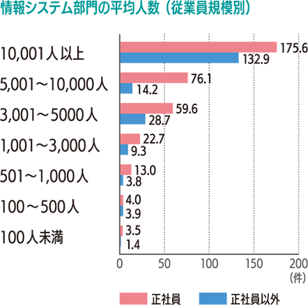 「100人未満規模」の企業では、約4割が情報システム部門の人数が「1人」と回答した。