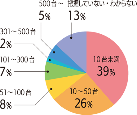 「利用しているサーバの台数」は、6割以上が50台未満であった。
