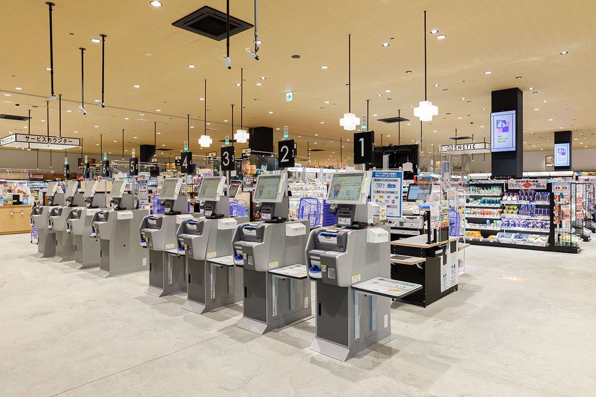 昨年からは新型のPOSレジ「セミセルフレジ」の実証実験も進めており、順次、多店舗での展開を検討しています。商品のバーコードスキャンはレジ係員が行ない、支払は来店者が実施する「セミセルフレジ」の導入が進めば、レジ業務を減らすと同時に、接客などをさらに充実させることができます。また、カメラとAIが来店者の情報を自動で判断し、属性に合わせた広告を配信するデジタルサイネージの実験なども、1F店舗で行なっています。