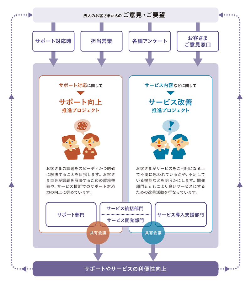 お寄せいただいたご意見は、社内の関係部署で共有し、お客さまにご満足いただけるよう、