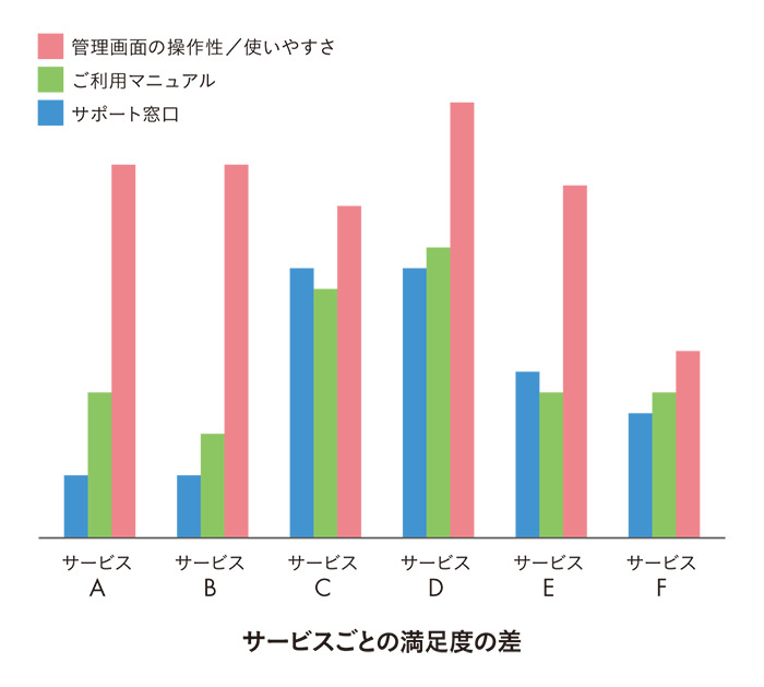 IIJのサービスと一括りに言っても、その種類は100を超えます。本来であれば、サービスレベルは均一であることが理想ですが、さまざまな「差」があるのも事実です。そこで、アンケートを通してサービスごとに同一の内容を聞くことで、この「差」を可視化できるように試みたところ、マニュアルが好評なサービス、安定性に不満があるサービスなど、各サービスの傾向や特徴が明らかになり、「均一なサービスレベル」を目指すキッカケになっています。これらはサービスのクオリティを測るうえで、客観的な比較データとして有意義に活用させていただいています。