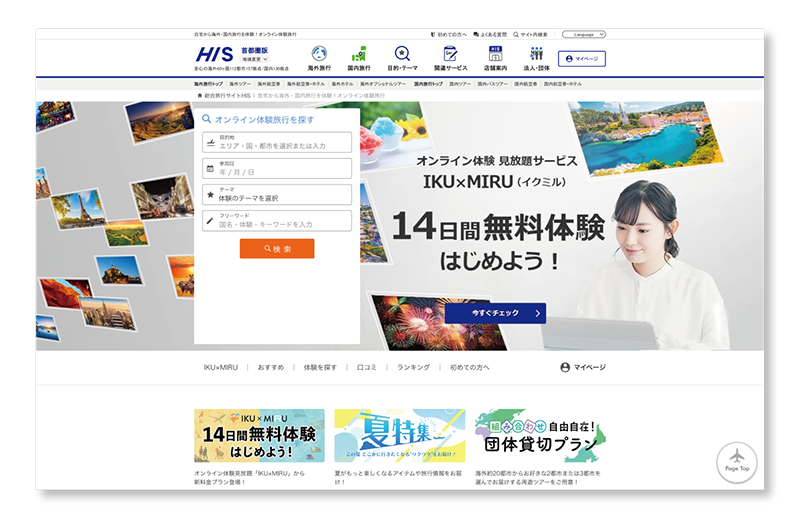 しかしながら、店舗のようにさまざまなシチュエーションに対応したサービスを目指してシステムを構築すると、どうしても複雑になるので、当時はインターネットで旅行をアレンジできるようなサービスを提供する旅行会社は多くなかった。そこで弊社では、お客さまに喜ばれ、他社と差別化できるなら、デジタルを駆使して可能な限り店舗と同等のサービスをインターネットでも提供できるよう心がけてきました。