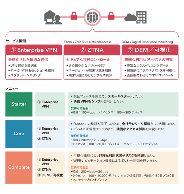 図1 IIJフレックスモビリティサービス/ZTNAのサービス機能とラインナップ