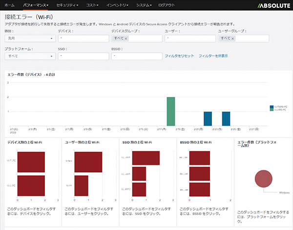 図5 Wi-Fi接続エラーのサマリを可視化するダッシュボード