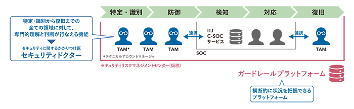 こうした領域まで対応していくためには、セキュリティの知識や技術だけでなく、お客さまそれぞれの業務やシステムなどを理解したうえで柔軟に運用していく必要があり、これは実社会における「かかりつけ医」のような役割に近いため、我々のサービスもお客さまの状況理解にもとづいて柔軟な支援を実現する「セキュリティドクター」を目指していきます。(図4)