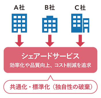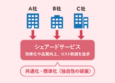 そうした状況の解決を目指す時に有効なのが、複数企業でITシステムを共同利用するシェアードサービスです。(図2)