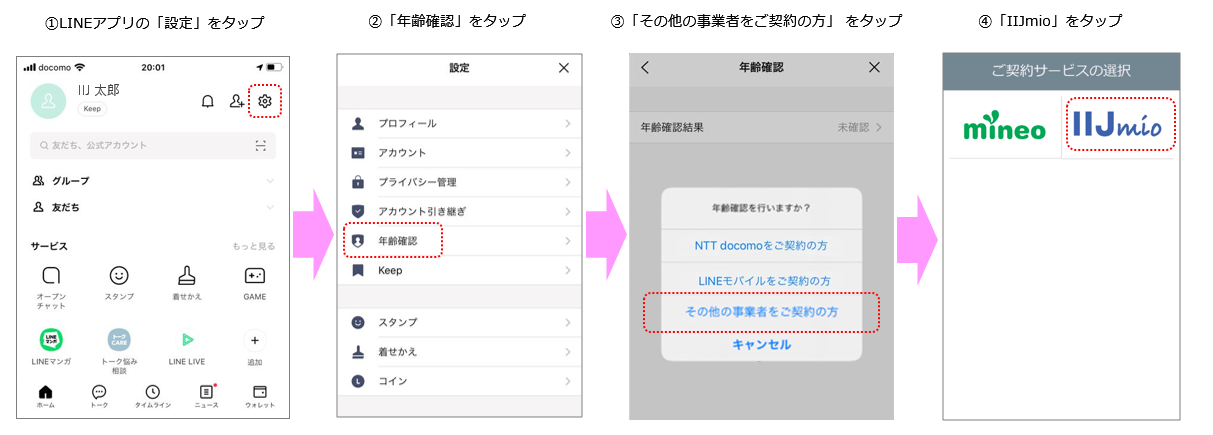 一般社団法人テレコムサービス協会 MVNO委員会(以下、MVNO委員会)とその参加MVNOであるイオンリテール株式会社(イオンモバイル)、株式会社インターネットイニシアティブ(IIJmio(アイアイジェイミオ))、株式会社オプテージ(mineo(マイネオ))は、青少年保護に向けた取り組みと利用者利便性を両立させるため、各事業者のお客さまが、LINE株式会社の提供するコミュニケーションアプリ「LINE」にて年齢確認するために必要となる年齢情報通知を開始いたします。(イオンモバイルでは3月下旬以降に開始予定)