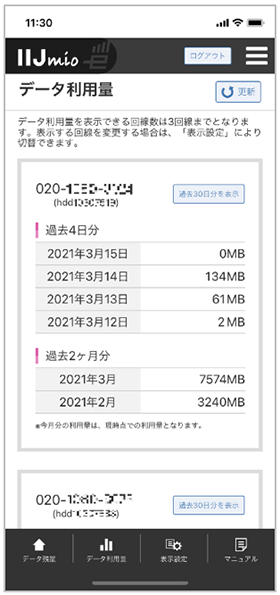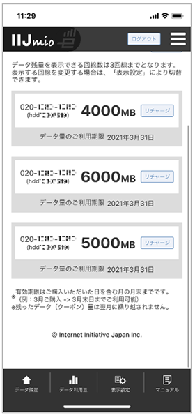 データの残量・利用量の確認、リチャージがスマホから可能に
