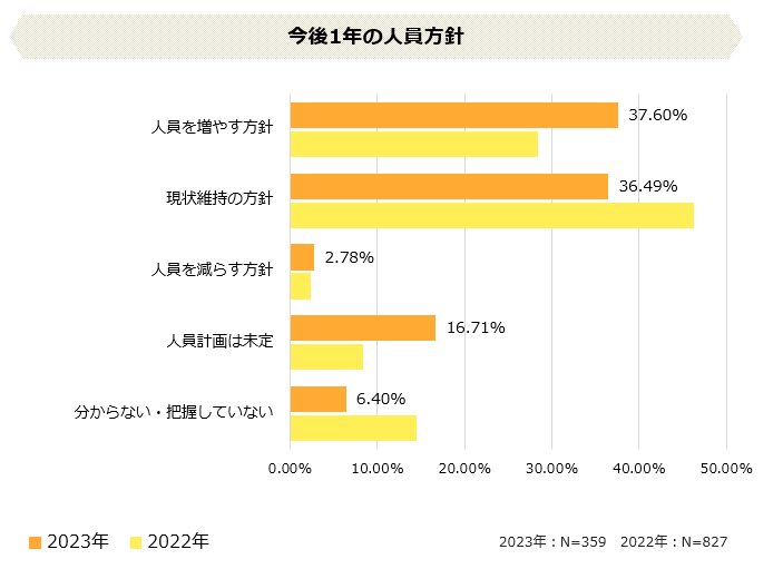 当社は、情報システム部門で働く方々をとりまく環境を把握するため、国内企業の情報システム部門を対象とした実態調査を2021年から毎年実施しています。今年も企業規模別の情報システム部門の平均人数や今後の人員計画、組織が抱える課題、システムの現状、各自のキャリアに関する内容などについて調査を実施し、情報システム関連業務の従事者から359件の回答を得ました。
