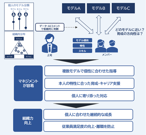 働き方の変化や仕事に対する価値観の多様化に伴い、働き手の自己実現手段やキャリアアップの選択肢が広がっています。企業においては従来の画一的な人材モデルではなく、個人の特性やキャリア志向を踏まえて一人ひとりにあわせた人材開発、育成を行うことで組織成長を推進していくことが必要とされています。