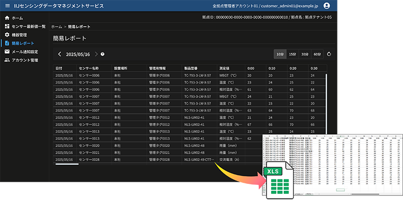 センシングデータの履歴を一覧表示。簡易帳票として出力も可能。 |