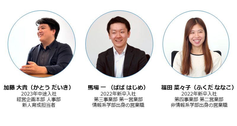 前編では新人研修の担当者と営業職で活躍する2名にお話を伺いました!