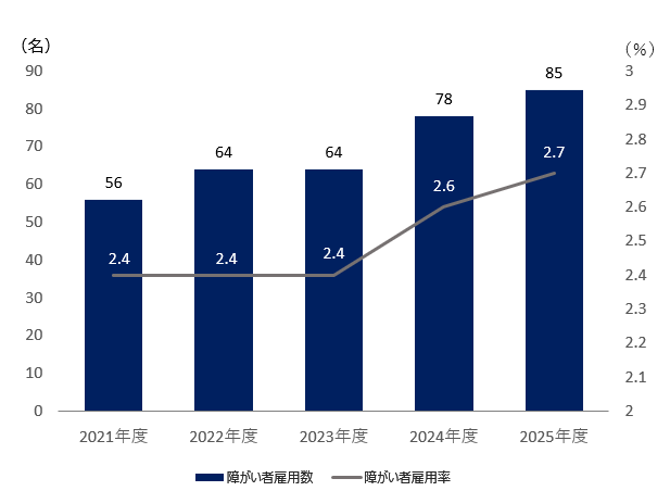 2025年6月現在、障がい者雇用率は2.7%で、法定雇用率を達成していますが、引き続きさらなる雇用推進に取り組んでいきます。