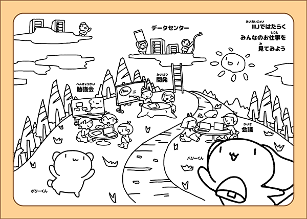 当日のコンテンツや、参加者特典のぬり絵では、IIJの障害対応のマスコットキャラクター「バリーくん」が大活躍しました。子どもたちからも「バリーくんがかわいい」と好評でした。