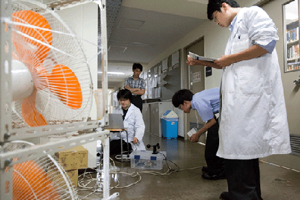 また、研究のために必要なデータ収集の一環として、センサーモジュールには風速計も接続しました。風速計が正しい値を示すように、センサーの校正作業も行います。