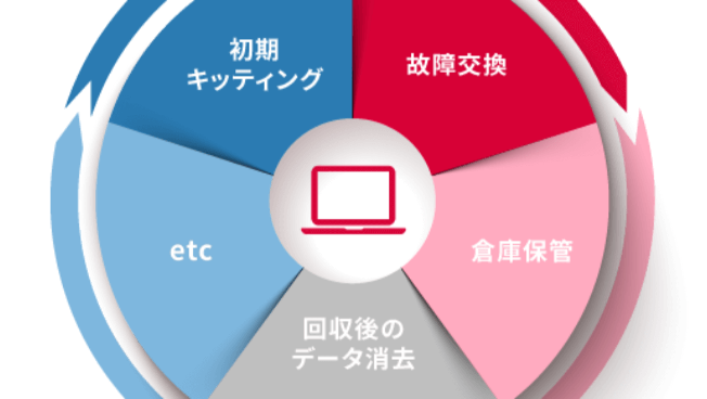 倉庫保管、故障交換、回収後のデータ消去等のPCライフサイクルマネジメントも併せてご提供。