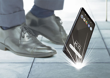 屋内外問わず手荒に扱われることも多い業務の現場において、安心してご利用できるように防水性能(IPX5、IPX8)、防塵性能(IP6X)に加え、高強度樹脂と金属を一体成形した高剛性ケースを採用。耐衝撃構造により落下の衝撃に強く画面の割れにくい堅牢性を実現しています。